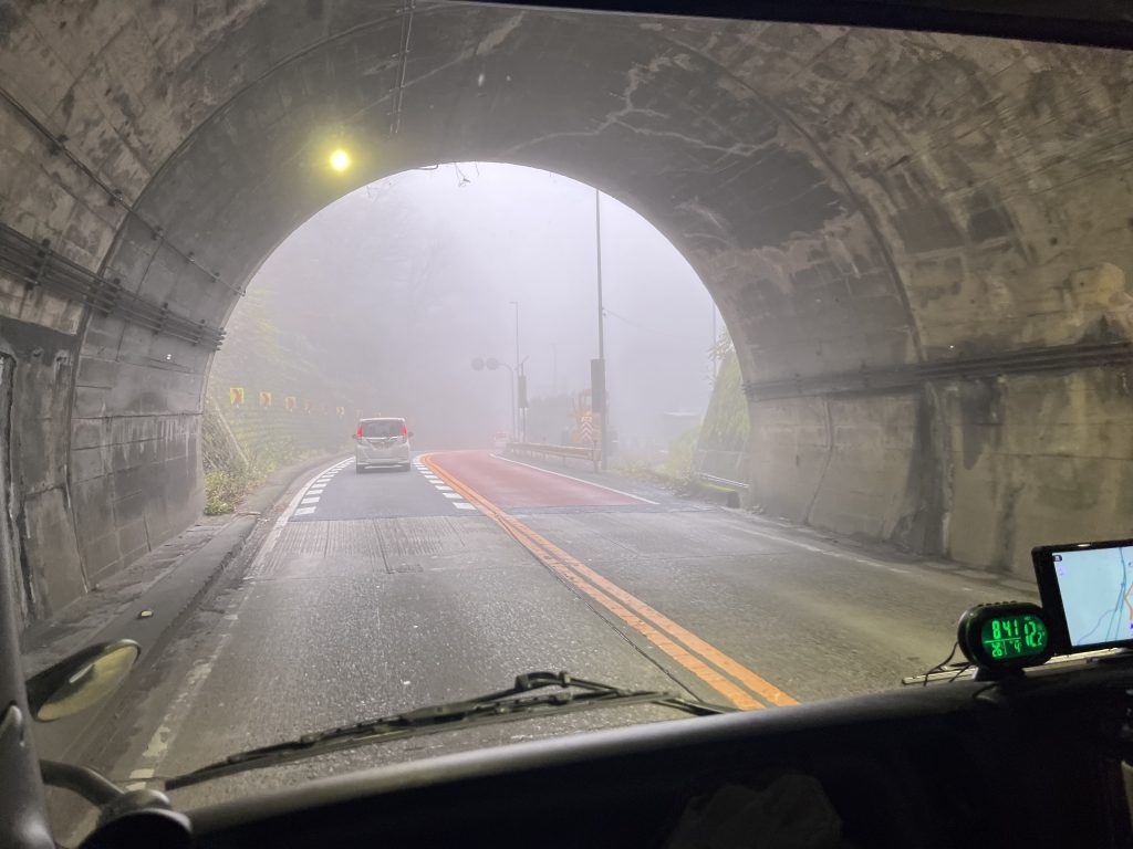 霧のエリアを抜けると、少しずつ視界も開け、無事に京丹波町の現場へ到着。